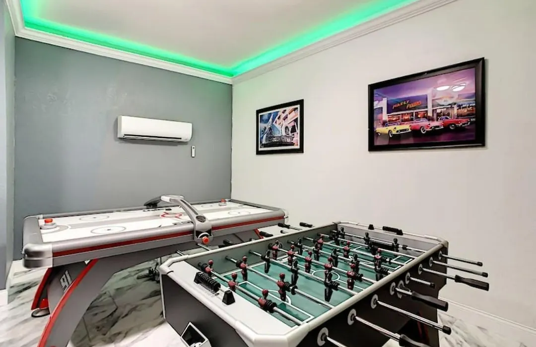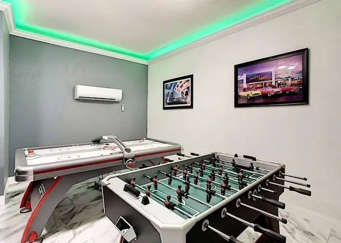 Com jacuzzi e sauna para uma experiência relaxante, a pousada Modern 6Br Resort Private Pool Near Disney Orlando está localizada a uma distância de 4.3 km do Parque Aquático Disney's Blizzard Beach. Com ginásio, banheira quente e sinuca, a acomodação está localizada a uma distância de 10 minutos de carro do Procurando Nemo.